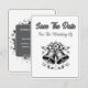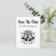 Tarjeta de Guardar la Fecha de Boda con Diseño de Campanas de Boda Monocromáticas. La parte delantera muestra campanas de boda monocromáticas. La parte trasera contiene los detalles personalizados de la próxima boda planificada.