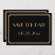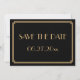 Tarjetas planas de guardar la fecha de boda doradas y negras con texto personalizable con arte deco de Gran Gatsby