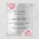 Un Save the Date moderno y elegante para una boda. Un fondo con apariencia plateada decorado con rosas y flores rosadas y blancas. Personalice y agregue una fecha y sus nombres. El texto: Save the Date está escrito con un estilo de letra manuscrita de moda grande.