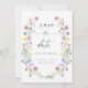 Anuncie su día especial con estilo con esta tarjeta de "Save the Date" de flores silvestres de acuarela, que presenta una corona floral pintada a mano de flores rosadas, moradas, amarillas y azules. La elegante letra moderna resalta la fecha de su boda, mientras que los suaves acentos botánicos crean un aspecto romántico y rústico. Perfecto para bodas boho, de jardín o de primavera y verano, este diseño coordina perfectamente con el conjunto completo de bodas de flores silvestres, que incluye invitaciones, tarjetas de RSVP, tarjetas de detalles y notas de agradecimiento. Personalice con sus nombres, fecha de boda y ubicación para un recuerdo atemporal que sus invitados amarán.