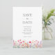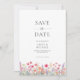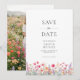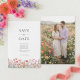Anuncia tu próxima boda con esta tarjeta para guardar la fecha con flores silvestres coloridas. Cuenta con un bonito borde de flores boho de acuarela rosa, coral y púrpura sobre un fondo blanco crujiente. Personaliza con tu foto en la parte posterior. Este diseño es perfecto para parejas que planean una ceremonia de jardín de cottage romántico de primavera o verano con un tema botánico.