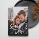 Tarjeta de guardar la fecha de boda con foto personalizada de tipografía