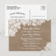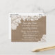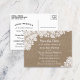 Tarjetas Postales Personalizadas de Guardar la Fecha de Boda de Arpillera Rústica y Encaje Blanco Antiguo.