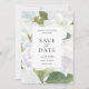 Tarjeta de guardar la fecha botánica con hermosas flores de magnolia blancas y follaje, y los detalles de su boda en fuente moderna. La tarjeta se puede personalizar fácilmente para cualquier evento agregando los detalles del evento, estilo de fuente, tamaño y color de la fuente, y redacción de su elección haciendo clic en el botón 'Personalizar'.