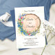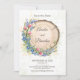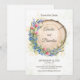 Tarjeta de guardar la fecha de boda rústica con flores silvestres, lavanda y arándanos dispuestos alrededor de una rebanada de madera natural. Ideal para bodas en el bosque, boho o rústicas. Personalice con los detalles de su boda para un aspecto cálido y natural.
