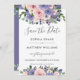 Esta elegante tarjeta de guardar la fecha de boda cuenta con un hermoso arreglo floral de acuarela en tonos lavanda y rubor. Diseñada para coincidir con nuestra colección de bodas Delight. Personalízala con tus detalles de manera fácil y rápida, simplemente presiona el botón de personalizar para reorganizar y dar formato al estilo y ubicación del texto. (c) The Happy Cat Studio