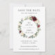 Esta elegante tarjeta de guardar la fecha de boda cuenta con una hermosa corona floral de acuarela en marfil y borgoña. Diseñada para coincidir con nuestra colección de bodas Rustic Burgundy. Personalice los detalles de manera fácil y rápida, simplemente presione el botón personalizar para reorganizar y dar formato al estilo y la ubicación del texto. (c) The Happy Cat Studio