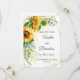 Tarjeta de guardar la fecha de boda rústica con girasoles brillantes y follaje de eucalipto. Este diseño de boda botánico es perfecto para bodas de otoño, campestres o al aire libre. Este diseño agrega calidez y alegría mientras mantiene un estilo rústico natural.