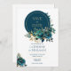 Esta tarjeta de guardar la fecha de boda presenta flores turquesas de acuarela y acentos dorados, lo que le da un encanto romántico. Las fuentes serif y script elegantes hacen que este diseño sea perfecto para bodas clásicas. También es adecuado para bodas rústicas, vintage y de estilo boho.