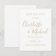 Con nombres de estilo de firma, esta elegante tarjeta de guardar la fecha dorada y blanca se puede personalizar con los detalles de su día especial de boda en tipografía dorada chic. Diseñado por Thisisnotme©