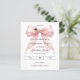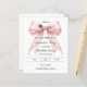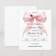Anuncia tu logro con este Save the Date de graduación Coquette. El diseño presenta un exuberante lazo rosa adornado con delicadas hebras de perlas y un icono clásico de birrete de graduación. Perfecto para la chica graduada con estilo que busca compartir su retrato con familiares y amigos.