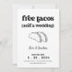 Tacos Gratis (y una boda). Una divertida tarjeta de guardar la fecha que pone en el centro de atención a... ¡los tacos! La ilustración está dibujada a mano.