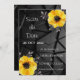 Tarjeta de guardar la fecha de boda negra con flores amarillas gradientes