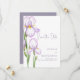 Tarjeta de Guardar la Fecha para una Boda Moderna. Los iris delicados en tonos de lila suave se representan sobre un fondo pastel, creando una atmósfera de sofisticación y tranquilidad. El diseño es moderno, aireado y perfecto para una boda elegante y romántica.