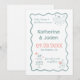 Un diseño de guardar la fecha de la boda con estilo de garabato caprichoso y alegre. El color básico es azul, el monograma de la novia y el novio también se incluye en el elemento de la etiqueta de la botella. Por favor, personalice todo el texto.