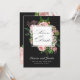 Invitación elegante con rosas rosadas y exuberante follaje verde en un estilo vintage sobre un fondo negro apagado. Combinada con una tipografía serif que se puede personalizar fácilmente según tus necesidades y bordes de rosas, esta es una elección perfecta para cualquier temporada. Esto se adapta a corbata negra o simplemente a una boda elegante con acentos florales.