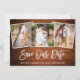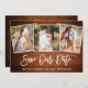 Tarjeta de anuncio de compromiso de guardar nuestra fecha de pareja de madera rústica de letra de pincel moderna con 3 fotos