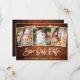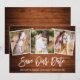Tarjeta de Anuncio de Compromiso de Guardar Nuestro Día con Letra de Pincel Rústico de Madera Moderna para Parejas con 3 Fotos