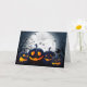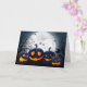 Tarjeta de saludo mostrada con una estampa festiva de calabazas aterradoras de Halloween impresa. Personalizar esta tarjeta o compra como está. Imágenes de acciones