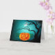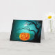 La tarjeta de saludo se muestra con una estampa festiva de calabazas aterradoras de Halloween impresa. Personalizar esta tarjeta o compra como está. Imágenes de stock vecteezy.com