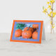 Tarjeta de Halloween con una linda calabaza sonriente. Es un recordatorio de que Halloween es divertido, divertido, divertido. El diseño tiene una imagen de calabazas con un borde azul y naranja.