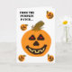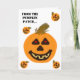 Tarjeta de Halloween con parche de calabaza sonrie