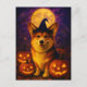 Tarjeta de Halloween de Corgi Lindo de Otoño para Postcrossing