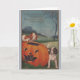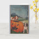 Tarjeta de felicitación de Halloween retro/vintage. ¡Dos adorables remolinos de aspecto "serio" y un gato negro jugando en un Jack-o-Lantern! Los perros y gatos están fuera de la noche, así que no te pierdas la vista.