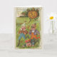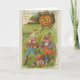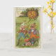 Una imagen inusual del vintage de 3 niños de mirada extraños (podrían ser los duendes) que corren lejos de una calabaza que los está persiguiendo. El interior de esta tarjeta se ha dejado el espacio en blanco que aguardaba su tacto personal.