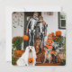 Carta feliz de Halloween con ilustracion acuarela de calabazas talladas, murciélagos y hojas de otoño en el frente y una foto en la parte trasera. Personalice fácilmente esta tarjeta de fotos de Halloween con su nombre familiar y su foto.