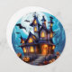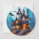 Cuta acuarela Halloween con una casa embrujada, calabazas divertidas y murciélagos. Personaliza fácilmente esta hermosa tarjeta de Halloween con tu nombre familiar.