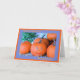 Calabazas, una con una sonrisa, en una tarjeta azul y naranja para tus nietos.