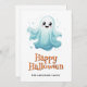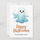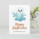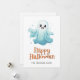 Halloween feliz con ilustracion acuarela de fantasmas y calabazas. Personaliza fácilmente esta linda tarjeta de Halloween para los niños con tu apellido y texto.
