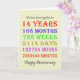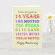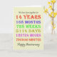 Tarjeta del 14º aniversario del boda que cuenta los años, días, meses, horas y minutos en que has estado casado. Gracioso, pero con un verso romántico dentro. ¡Una tarjeta para hacer una pausa para pensar! ¡Se han tenido en cuenta los años de salto!