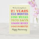 Tarjeta del 21 aniversario del boda que cuenta los años, días, meses, horas y minutos en que has estado casado. Gracioso, pero con un verso romántico dentro. ¡Una tarjeta para hacer una pausa para pensar! ¡Se han tenido en cuenta los años de salto!