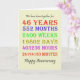 Tarjeta del 46 aniversario que cuenta los años, días, meses, horas y minutos en que has estado casado. Gracioso, pero con un verso romántico dentro. ¡Una tarjeta para hacer una pausa para pensar! ¡Se han tenido en cuenta los años de salto!