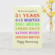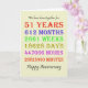 51ª tarjeta de aniversario contando los años, días, meses, horas y minutos en que has estado casado. Gracioso, pero con un verso romántico dentro. ¡Una tarjeta para hacer una pausa para pensar! ¡Se han tenido en cuenta los años de salto!