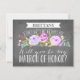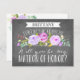 Pregúntale a tu matrona de honor con una hermosa carta que dice "No puedo decir "lo hago" sin ti." Esta tarjeta de dama de honor cuenta con bonitas flores de color agua y una mezcla de tipografía moderna, todo ello en un moderno marco de pizarra. Facilite que digan que sí con esta hermosa y elegante carta. Disponible en versión de criada de honor, matrona de honor, novias y chicas de flores. Diga gracias con una tarjeta de agradecimiento.