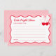 Celebra con la tarjeta de ideas para la noche de cita de la despedida de soltera "La cereza en lo alto", perfecta para un tema de despedida de soltera con cereza en lo alto. Ya sea que se trate de una "Ella es la cereza en lo alto de la despedida de soltera" o que estés buscando ideas para una despedida de soltera con tema de San Valentín, esta tarjeta añade un toque romántico al tema de la despedida de soltera de San Valentín. Ideal para ideas de despedida de soltera rosadas, ambiente de amor en el aire en la despedida de soltera, o una fiesta de despedida de soltera de beso a la señorita de la despedida. ¡Crea recuerdos con una despedida de soltera roja y rosa o un tema de despedida de soltera con lazo!