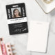 Tipografía moderna agente notarial legal profesional certificado abogado asesor ley placa de identificación personalizada negra y blanca con logotipo de pluma y caligrafía elegante. +++++++++++ Fácil de personalizar con su foto, sus datos y código de barras en ambos lados.