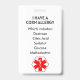 Tarjeta De Identificación Alerta alérgica al maíz