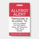 Tarjeta De Identificación Alerta de alergia para información de contacto en
