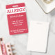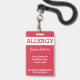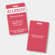Alerta de alergia alimentaria personalizada para niños en rojo. Fijar mediante una correa, clip metálico o clip retráctil a una mochila, botiquín o para que lo use un niño. Personalice con sus alergias, información de contacto o instrucciones de emergencia. Edite para cambiar los colores de fuente y fondo o el estilo de texto. La información se puede escribir en el anverso o reverso. www.LilAllergyAdvocates.com
