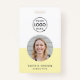 Tarjeta de identificación corporativa sencilla y elegante que se puede personalizar fácilmente con la foto de identificación de su empleado, nombre, posición, logotipo de la empresa, detalles de negocio y código QR o código de barras. El elegante diseño presenta una moderna tipografía minimalista y una pancarta en color amarillo limón que destaca entre la gente. La imagen que se muestra es para fines de ilustracion y sólo se sustituye por la suya. La imagen de marcador de posición es de una mujer feliz con el pelo blanco ondulado.