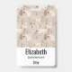 Insigne personalizado con un patrón nórdico lindo. Árboles de pino de invierno, osos, renos y ardillas. Color marrón claro.