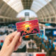Palmeras en una isla con el sol poniéndose. 100% de personalización. Haga clic en el botón PERSONALIZAR para agregar, mover, eliminar, cambiar el tamaño o cambiar cualquiera de las fuentes o gráficos.