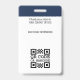 Crea un aspecto profesional con esta elegante placa de identificación. Una plantilla sencilla personalizada con su foto de identificación, nombre, cargo, logotipo de la empresa y símbolos de acreditación. Los detalles de devolución están en la parte posterior, junto con información adicional, y un código de barras o código QR. Personalizar el texto para que se adapte a su negocio. Ideal para muchos lugares de trabajo diferentes, incluyendo profesionales corporativos, consultores de negocios, trabajadores minoristas, personal médico y más. Colores impresos: azul marino muy oscuro, negro y blanco.