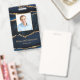 Esta elegante y moderna credencial de identificación presenta agata azul marino y dorada con un borde dorado alrededor de tu foto personalizada, y tu nombre y título profesional en la parte inferior. Perfecta para inmobiliarias, notarios, planificadores de eventos, estilistas, artistas de maquillaje y cualquier profesional que desee un look moderno y glamoroso.