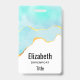 Tarjeta De Identificación Azul verde tropical tranquilo con borde dorado