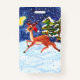 Bebé venado en Santa Hat Navidades pintando por el chica de 6 años "Art by Kids" (Arte por los niños) de vacaciones de invierno